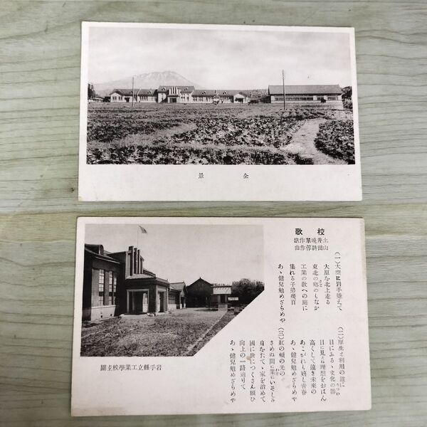 1_ 絵葉書 計2枚 岩手県立工業学校 校歌 玄関 全景 230013