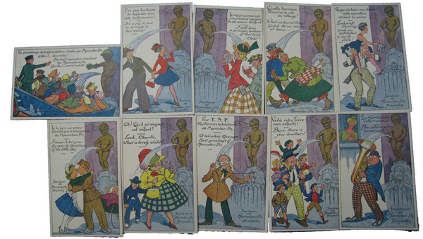 外国製デザイン絵葉書 漫画 小便小僧