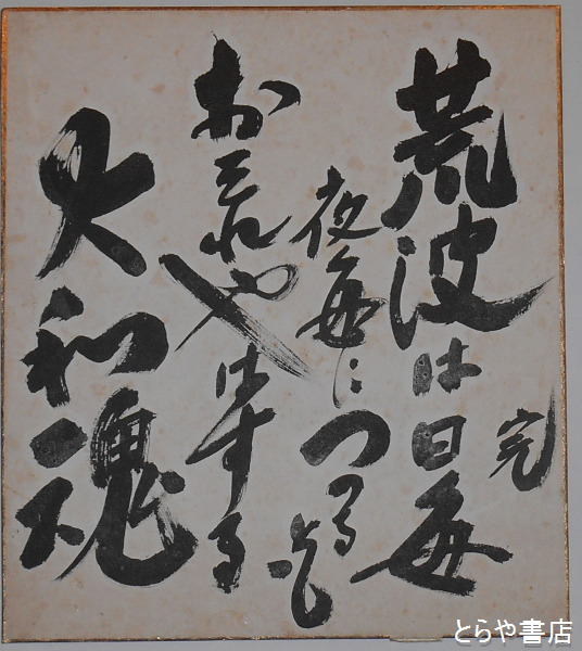 加藤完治色紙 「荒波は日毎夜毎につのるともおそれやはする大和魂」