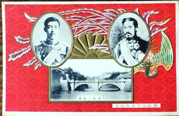 D26032506〇戦前絵葉書 明治天皇 大正天皇 エンボス加工 東京遷都50年記念 奠都五十年記念 大正6年〇和本古書古文書