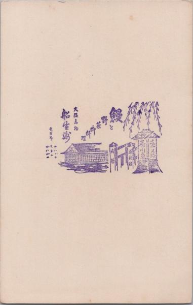 1001062■戦前 はがき■スタンプ 印 大阪名物 船生浦 鰻と野菜御料理