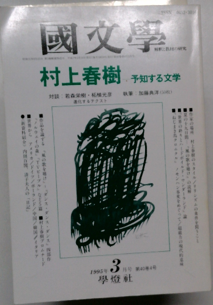 国文学「解釈と教材の研究」村上春樹ー予知する文学 「対談」若森栄樹 拓植光彦 「執筆」加藤典洋 50枚 1995年3月号 第40巻第4号「通巻583号」