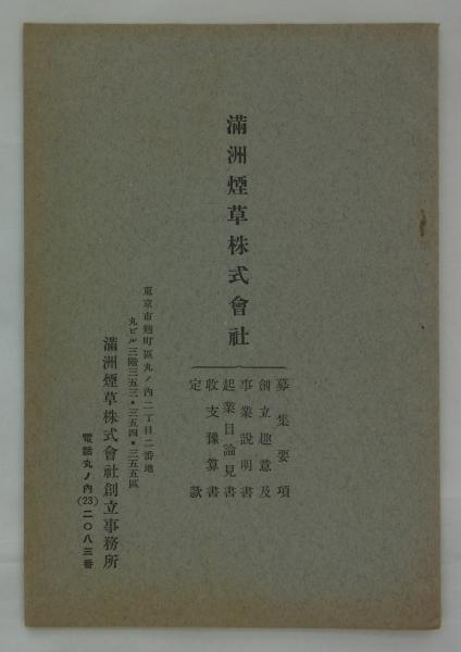満洲煙草株式会社募集要項・創立趣意及事業説明書・起業目論見書・収支予算書・定款