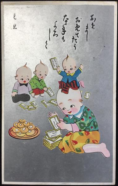 〈絵葉書〉年賀状を見るキューピーちゃん達