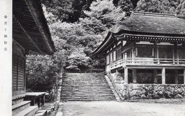 N26032141○戦前絵葉書○奈良 女人高野 室生寺 金堂(国宝)と弥勒堂 古写真○和本古書古文書