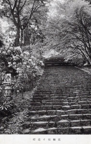 N26032142○戦前絵葉書○奈良 女人高野 室生寺 磴道と石楠花 古写真○和本古書古文書