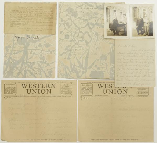 八雲追悼資料 芳名帳、P.D.パーキンス写真(2枚)ほか 小泉(八雲)家旧蔵 Handwritten invoice (?)P.D.Perkins: Memorial materials for Lafcadio Hearn; Guest book, photographs, etc.