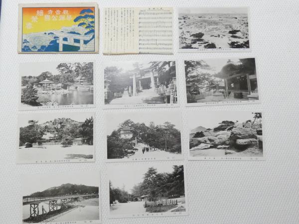 1000655■戦前 絵葉書■香川 観音寺市 琴弾公園 八幡宮 公園 有明小唄 袋付 小唄 9枚 歌詞つき
