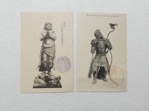 1000639■戦前 絵葉書■国宝 八大童子之内矜羯羅童子 神武天皇御銅像 宝物 2枚