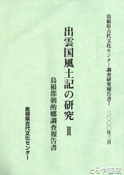 島根県古代文化センター調査研究報告書7 出雲国風土記の研究Ⅱ 島根郡朝酌郷調査報告書