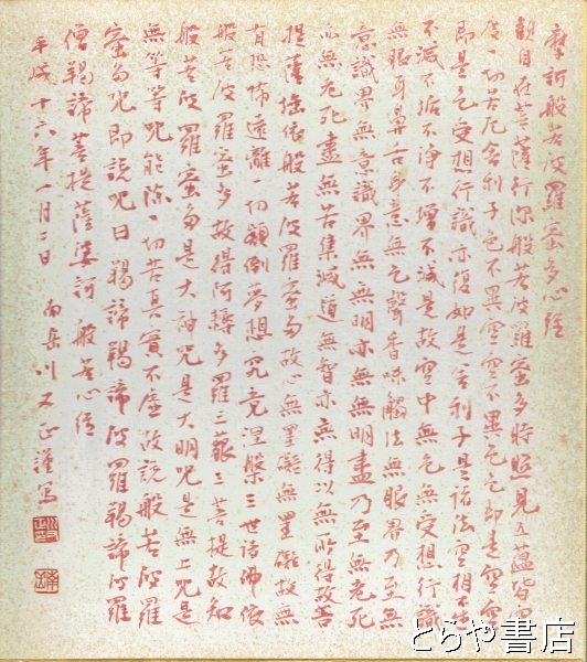 川又南岳色紙 「摩訶般若波羅密多心経」朱筆