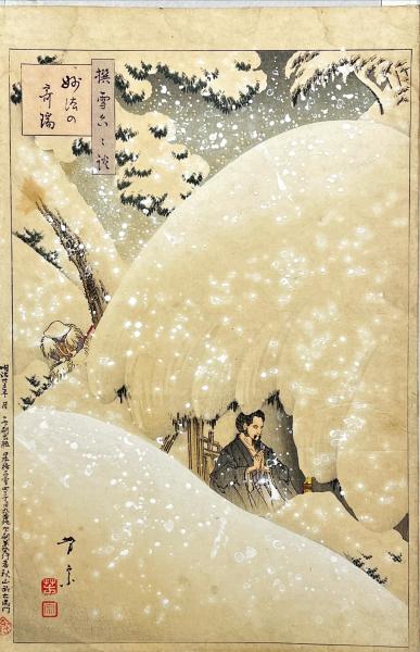 二代目新井芳宗木版画 撰雪六六談の内【妙法の奇端】