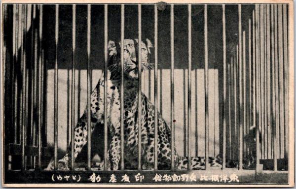1001282■戦前 絵葉書■矢野動物館 豹 ひょう(動物 動物園)