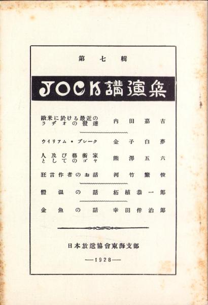 JOCK講演集 第6輯 -趣味講演4篇- 昭和3年4月(名古屋市)