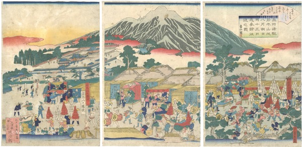 奥州津軽岩木山従八月朔日同十五日迄参詣往返之図 Pilgrims on Mount Iwaki in Tsugaru, Mutsu Province in the Eighth Month