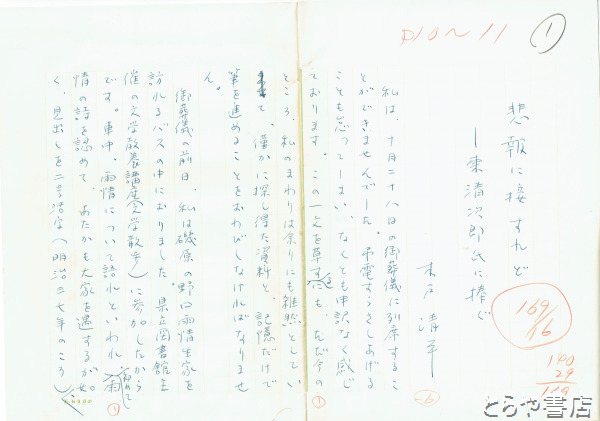 木戸清平草稿 「悲報に接すれど」東清次郎氏に捧ぐ