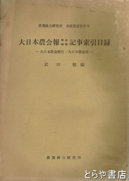 大日本農会報明治期間記事索引 大日本農会報告・大日本農会報