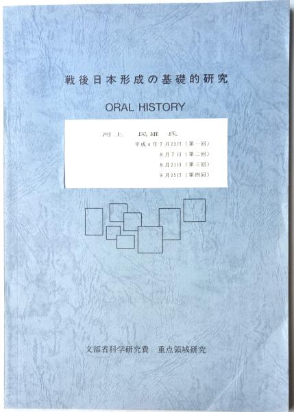 戦後日本形成の基礎的研究 ORAL HISTORY 文部省科学研究費 重点領域研究