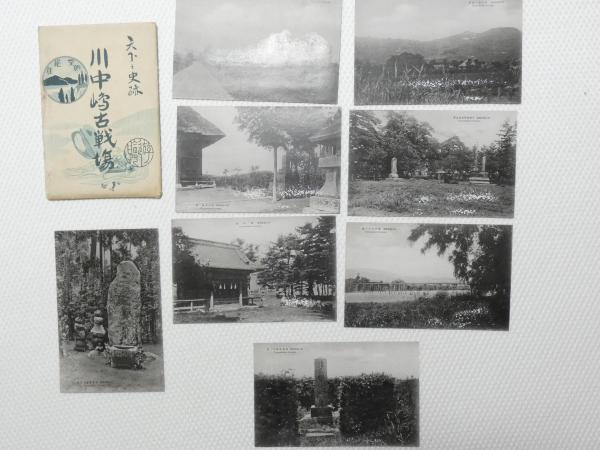 1000682■戦前 絵葉書■長野県 川中崎古戦場 八幡原 茶白山 山本勘助の墓 妻女山 諸角豊後守の墓 8枚 袋つき