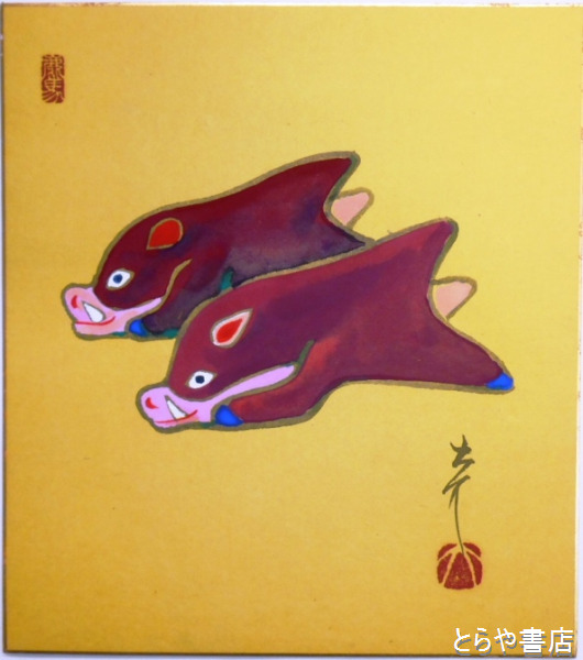 牧大介色紙 「猪土人形」京都・山崎 共袋