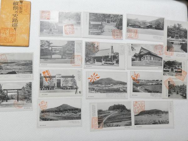 1000658■戦前 絵葉書■畝傍の史蹟巡り 16枚 袋つき 袋少破れ 畝傍全景