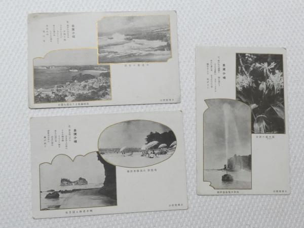 1000557■戦前 絵葉書■三重県 志摩郡御座村金比羅山頂より御座濱島方面 志摩郡御村濱之景 志摩郡御座岬海岸之奇岩 3枚