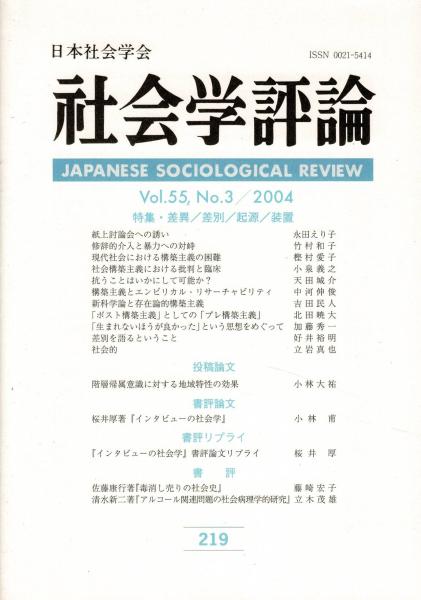 社会学評論Vol.55, No.3 特集・差異/差別/起源/装置