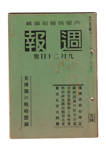 週報 153 英仏独の戦時体制 満洲治安の確立