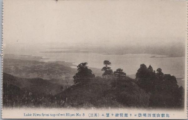 1001058■戦前 絵葉書■比叡山頂四明嶽より琵琶湖