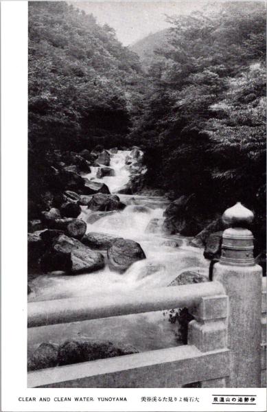 1001135■戦前 絵葉書■三重県 伊勢湯の山温泉 大石橋より見たる渓谷美
