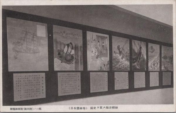 1000863■戦前 絵葉書■日本画絵巻 国史を貫く海洋精神 鶴舞海軍館