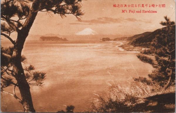 1000891■戦前 絵葉書■稲村ヶ崎より見たる富士及江之島