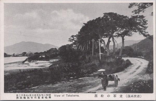 1000895■戦前 絵葉書■福井 若狭高浜 立石の松原(荷車)