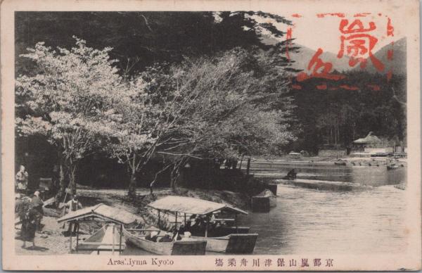 1000928■戦前 絵葉書■京都府 嵐山保津川舟乗場