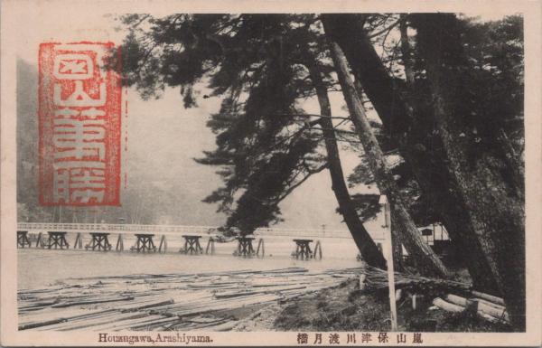 1000922■戦前 絵葉書■京都嵐山保津川出合(橋)