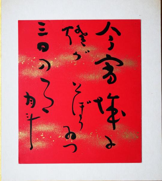 【吉野秀雄 色紙 毛筆肉筆 落款 】金色紙