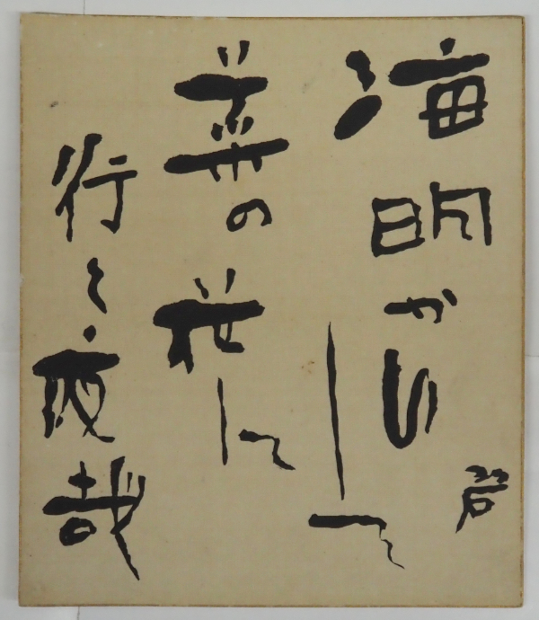 河東碧梧桐小色紙 『海明かりして菜の花に行く夜哉』 毛筆書 少痛少日焼 210×180ミリ