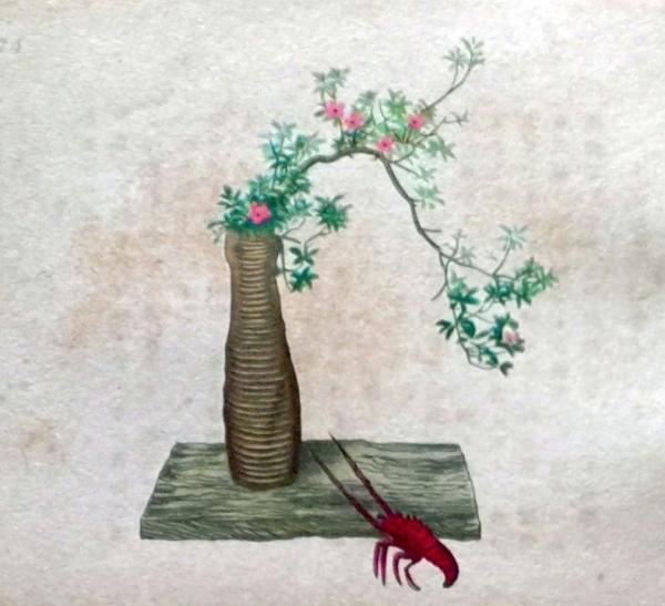 D26030661〇彩色石版画 梅に赤椿 盛花 西洋花 生花図譜 華道 生花 解説付き 昭和年代〇和本古書古文書