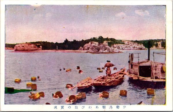 1001149■戦前 絵葉書■三重 勢鳥羽あわび取の実況