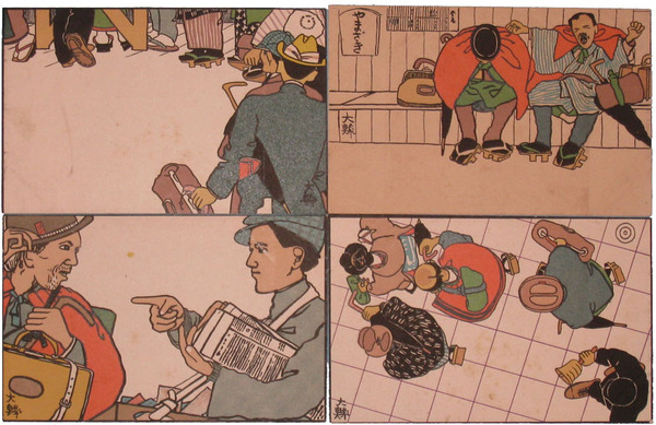 人力車手彩絵葉書