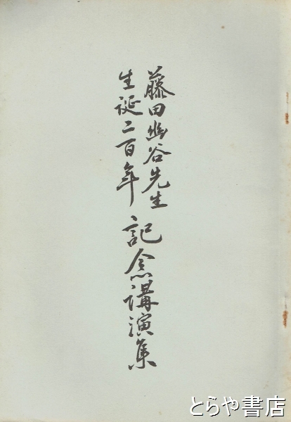 藤田幽谷先生生誕二百年記念講演集 藤田幽谷・東湖両先生略年譜付