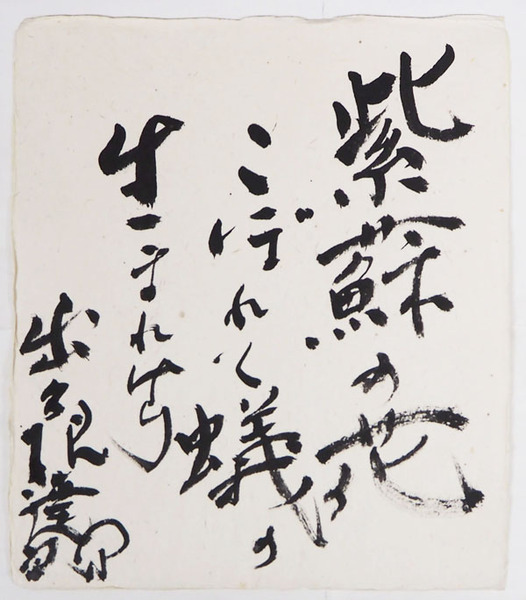 出久根達郎色紙 『紫蘇の花こぼれて蟻の生まれけり』 毛筆書 和紙色紙