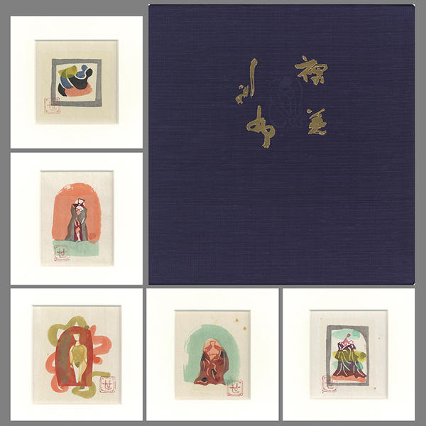 棟方忘功表裏墨画賛扇「飛天図」