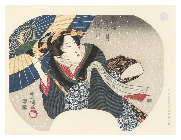 伊場仙版 団扇絵 今様十二ヶ月 臘月【復刻版】 Fan Prints :The twelve months of Modern Beauties / December【Reproduction】