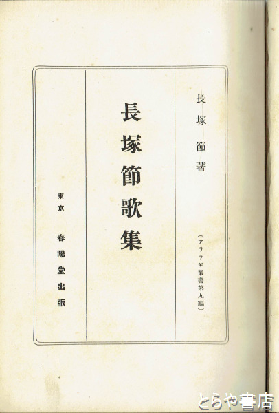 長塚節歌集 <初版 函付 背ヤケ蔵印有>