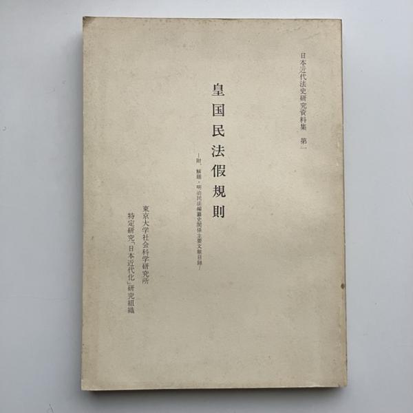 皇国民法仮規則-附、解題・明治民法編纂史関係主要文献目録- 日本近代法史研究資料 第一(東京大学社会科学研究所 特定研究「日本近代化」研究組織・1970年)詳細は目次画像参照