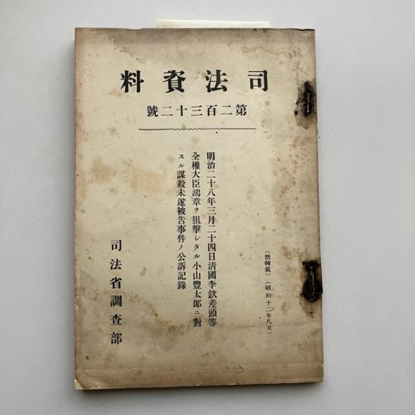 司法資料 第二百三十二号(司法省調査部・昭和12年)明治二十八年三月二十四日清國李欽差頭等全權大臣鴻章ヲ狙撃シタル小山豊太郎ニ對スル謀殺未遂被告事件ノ公訴記録(李鴻章狙撃事件)詳細は目次画像参照