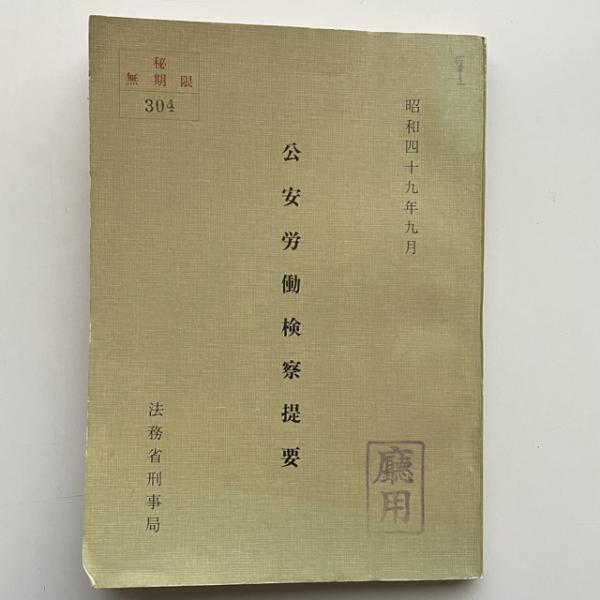 公安労働検察提要(秘 無期限)(昭和49年9月・法務省刑事局)庁用資料 詳細は目次画像参照