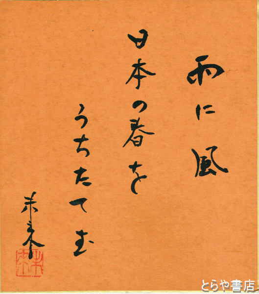 風戸未来色紙 「雨に風 日本の春を うちたてむ」