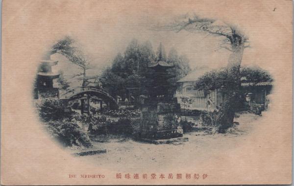 1000756■戦前 絵葉書■三重県 伊勢朝熊岳本堂前連珠橋